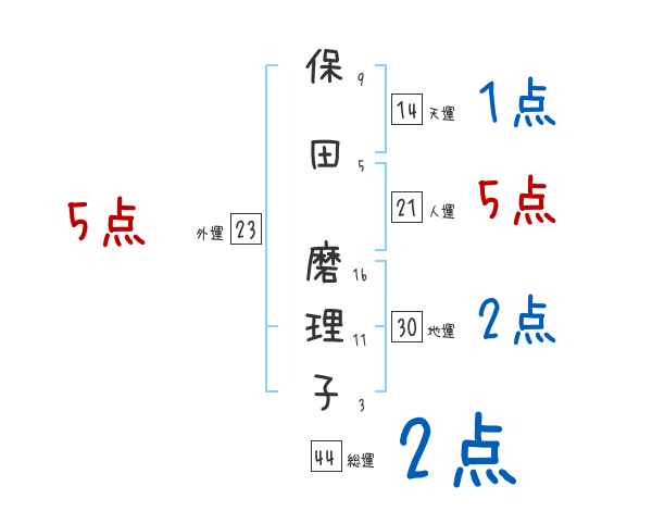 保田磨理子さんの画数の鑑定結果
