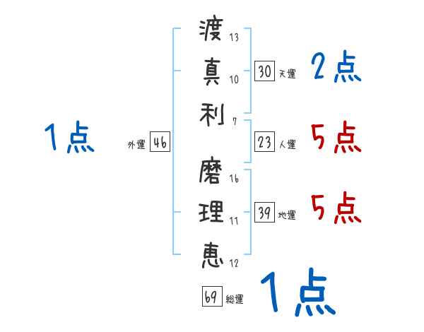 渡真利磨理恵さんの画数の鑑定結果