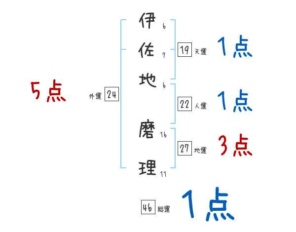 伊佐地磨理さんの画数の鑑定結果