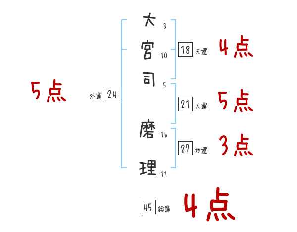 大宮司磨理さんの画数の鑑定結果