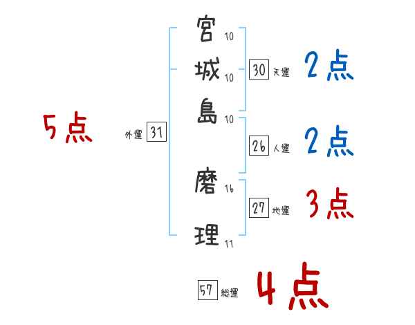 宮城島磨理さんの画数の鑑定結果