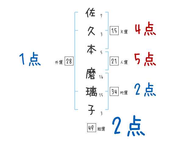 外運![]() | 佐久本磨璃子さんの外運は28画の1つ星!家庭環境に注意。スポーツで活躍できる能力があるかも。 生活面を象徴する運勢です。外部から受ける影響力を表し、結婚運、家庭運や職場、環境への順応性を表します。 |