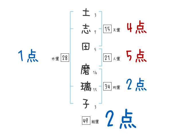 天運![]() | 土志田磨璃子さんの天運は15画の4つ星!人徳があり出世する。順調に物事を進め円満な人生。 家系が持つ宿命的な運勢を表します。祖先から受け継いだ苗字ですので自分の力が及びません。家柄を象徴します。 |