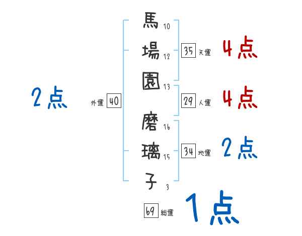 馬場園磨璃子さんの画数の鑑定結果