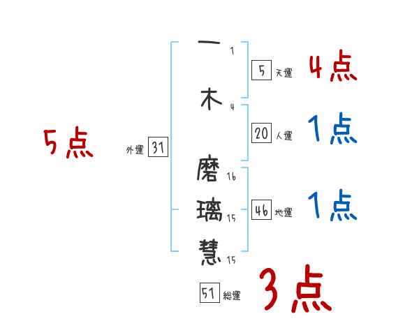 一木磨璃慧さんの画数の鑑定結果