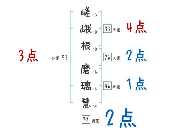 嵯峨根磨璃慧さんの画数の鑑定結果
