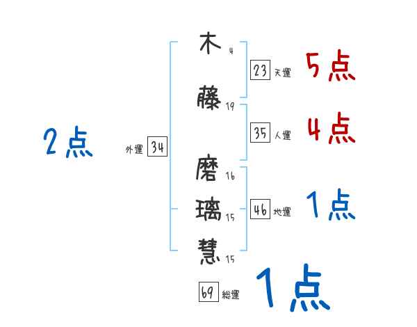 木藤磨璃慧さんの画数の鑑定結果
