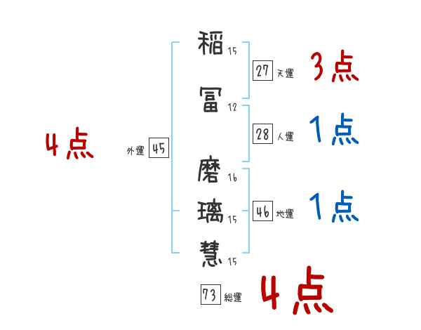 稲冨磨璃慧さんの画数の鑑定結果