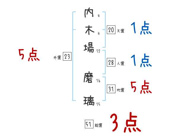 内木場磨璃さんの画数の鑑定結果