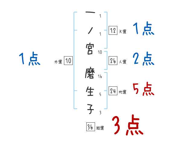 一ノ宮磨生子さんの画数の鑑定結果