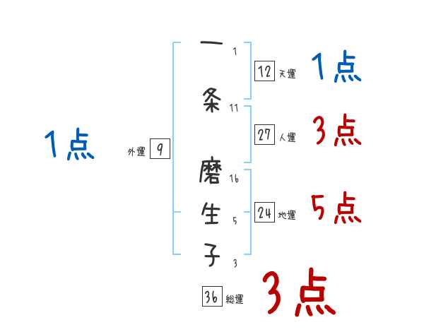 総運![]() | 一条磨生子さんの総運は36画の3つ星!先見性が豊かです。多少神経質で苦労することも。 あなたの人生を表す1番重要な運勢です。生涯を通じて影響する総合運となり、主に50歳以降の晩年期に影響を及ぼします。 |