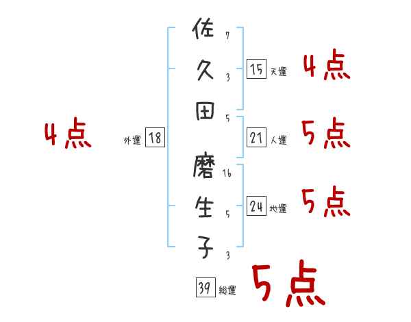 天運![]() | 佐久田磨生子さんの天運は15画の4つ星!人徳があり出世する。順調に物事を進め円満な人生。 家系が持つ宿命的な運勢を表します。祖先から受け継いだ苗字ですので自分の力が及びません。家柄を象徴します。 |