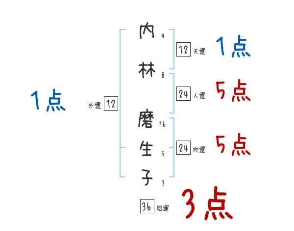総運![]() | 内林磨生子さんの総運は36画の3つ星!先見性が豊かです。多少神経質で苦労することも。 あなたの人生を表す1番重要な運勢です。生涯を通じて影響する総合運となり、主に50歳以降の晩年期に影響を及ぼします。 |