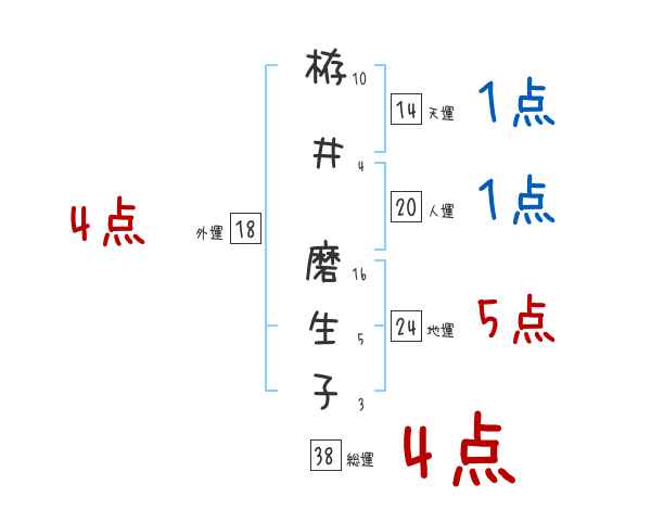 栫井磨生子さんの画数の鑑定結果
