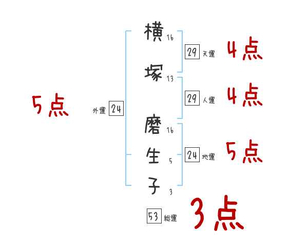 横塚磨生子さんの画数の鑑定結果