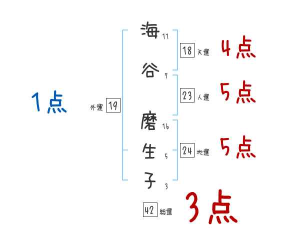 海谷磨生子さんの画数の鑑定結果