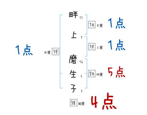 畔上磨生子さんの画数の鑑定結果