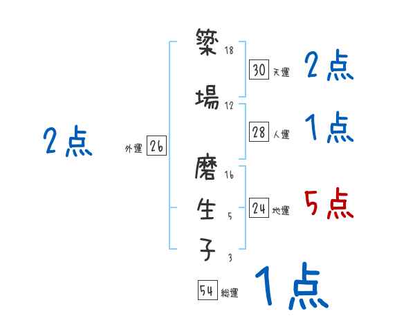 簗場磨生子さんの画数の鑑定結果