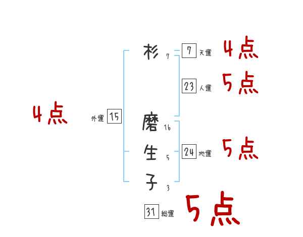 杉磨生子さんの画数の鑑定結果