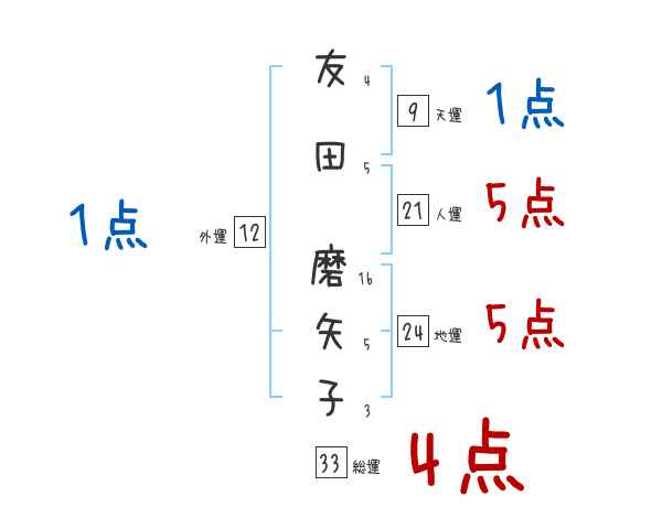 友田磨矢子さんの画数の鑑定結果