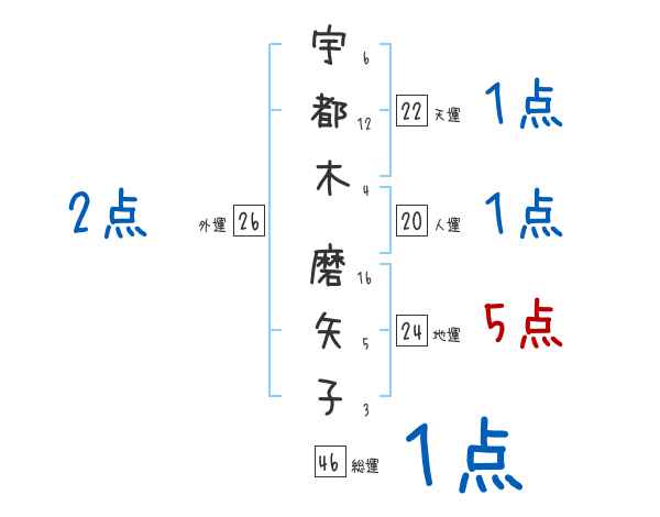 外運![]() | 宇都木磨矢子さんの外運は26画の2つ星!波瀾万丈かも。信頼できる人を大事にしましょう。 生活面を象徴する運勢です。外部から受ける影響力を表し、結婚運、家庭運や職場、環境への順応性を表します。 |