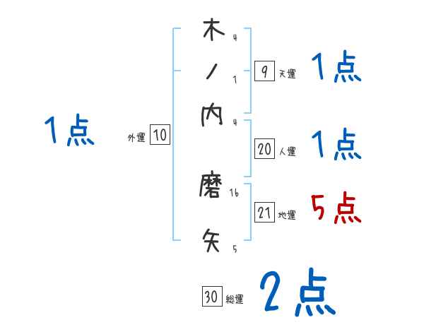 木ノ内磨矢さんの画数の鑑定結果