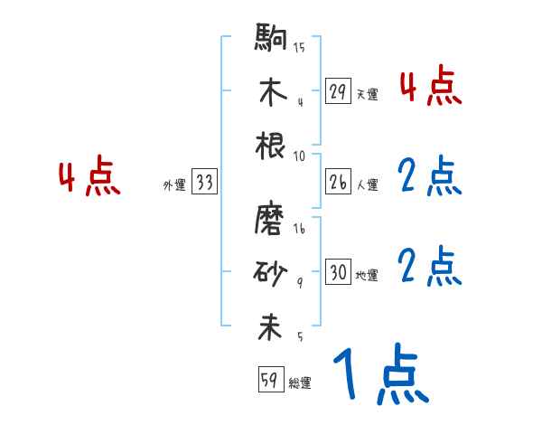 駒木根磨砂未さんの画数の鑑定結果