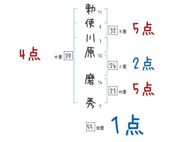 勅使川原磨秀さんの画数の鑑定結果