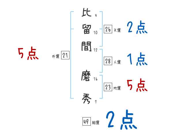 比留間磨秀さんの画数の鑑定結果