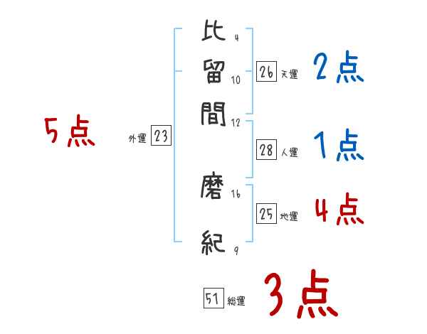 比留間磨紀さんの画数の鑑定結果