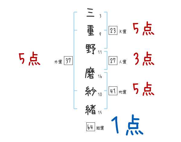 三重野磨紗緒さんの画数の鑑定結果