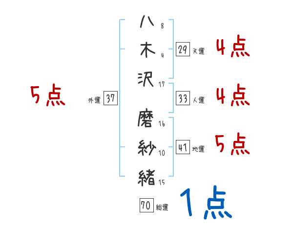 八木沢磨紗緒さんの画数の鑑定結果