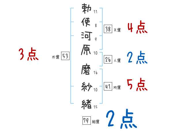 外運![]() | 勅使河原磨紗緒さんの外運は53画の3つ星!やや見栄っ張りで虚栄心がある。散財に注意。 生活面を象徴する運勢です。外部から受ける影響力を表し、結婚運、家庭運や職場、環境への順応性を表します。 |