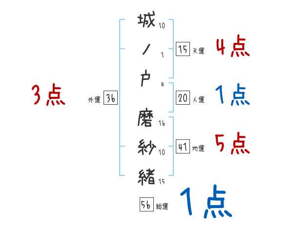 城ノ戸磨紗緒さんの画数の鑑定結果