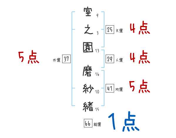 室之園磨紗緒さんの画数の鑑定結果