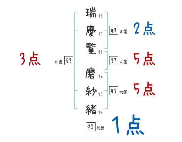 瑞慶覧磨紗緒さんの画数の鑑定結果