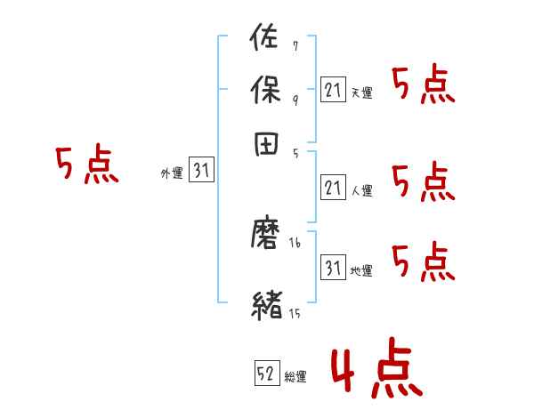 佐保田磨緒さんの画数の鑑定結果
