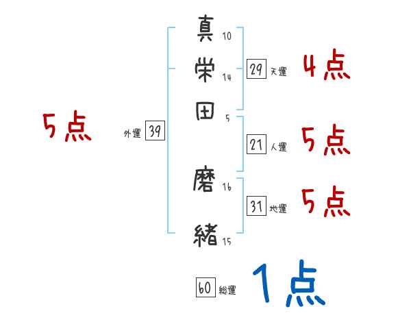 真栄田磨緒さんの画数の鑑定結果
