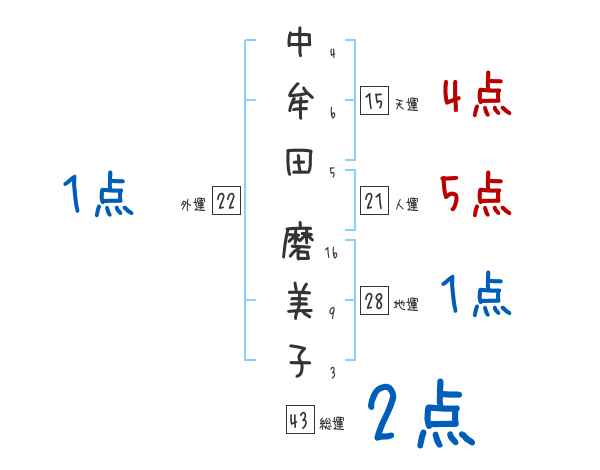 天運![]() | 中牟田磨美子さんの天運は15画の4つ星!人徳があり出世する。順調に物事を進め円満な人生。 家系が持つ宿命的な運勢を表します。祖先から受け継いだ苗字ですので自分の力が及びません。家柄を象徴します。 |