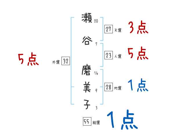 瀬谷磨美子さんの画数の鑑定結果