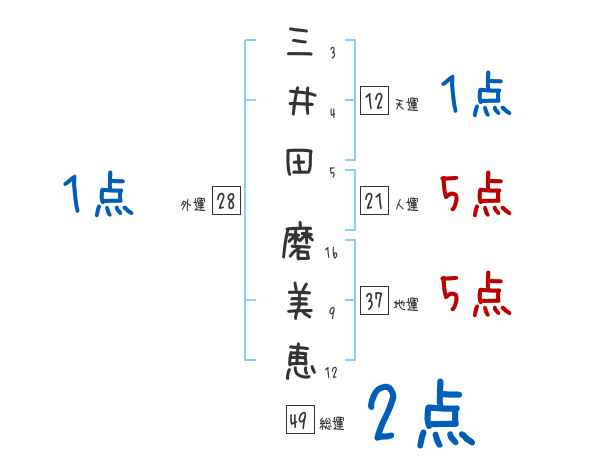 三井田磨美恵さんの画数の鑑定結果