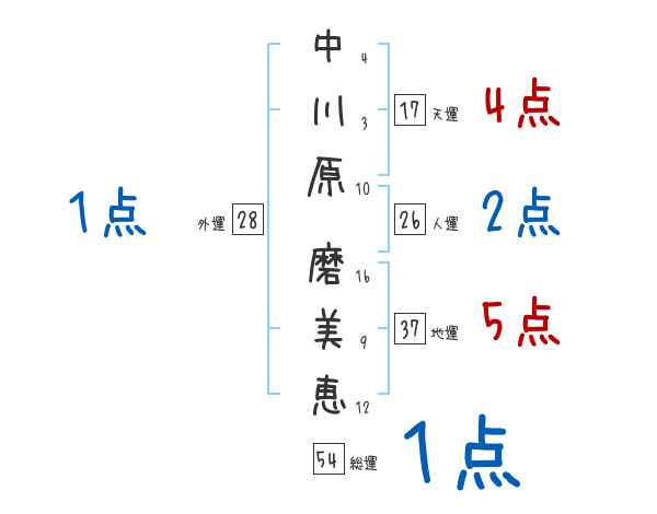 中川原磨美恵さんの画数の鑑定結果
