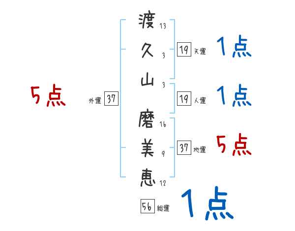 渡久山磨美恵さんの画数の鑑定結果
