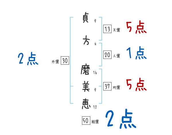 総運![]() | 貞方磨美恵さんの総運は50画の2つ星!浮き沈みが激しく不安定。しりすぼみに衰退しやすいので注意しましょう。 あなたの人生を表す1番重要な運勢です。生涯を通じて影響する総合運となり、主に50歳以降の晩年期に影響を及ぼします。 |