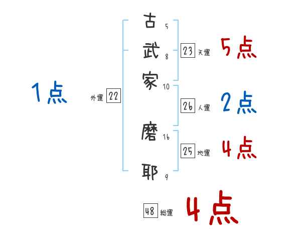 古武家磨耶さんの画数の鑑定結果