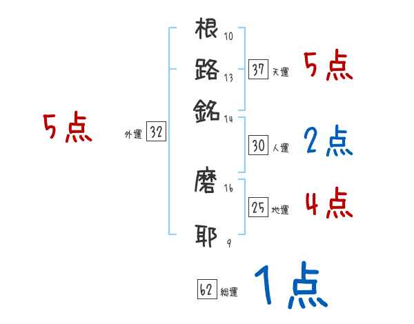 根路銘磨耶さんの画数の鑑定結果
