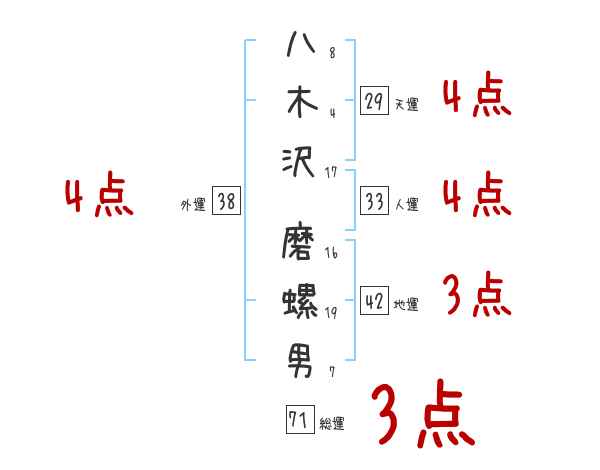 八木沢磨螺男さんの画数の鑑定結果