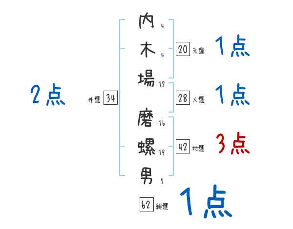 内木場磨螺男さんの画数の鑑定結果