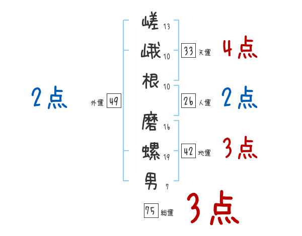 嵯峨根磨螺男さんの総運は75画の3つ星