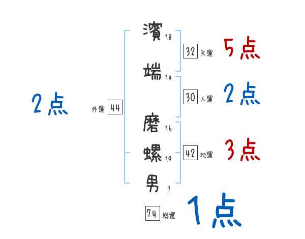 濱端磨螺男さんの画数の鑑定結果